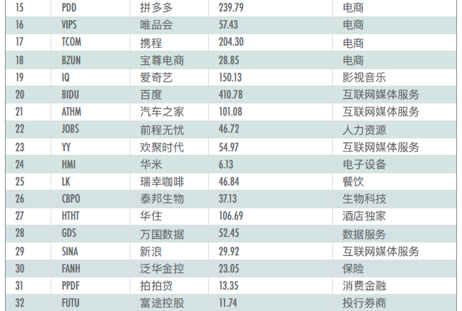 2019中概股最具投資價值TOP50